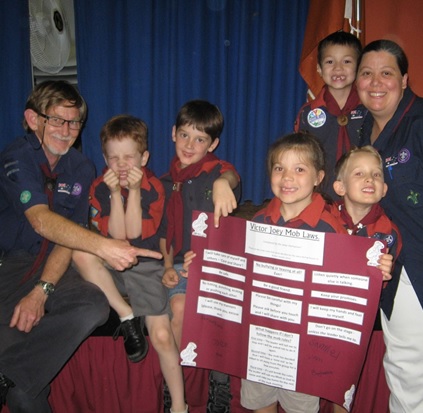 First up, Wolf showed the mob some puppetry techniques and then they all had a go at being the puppeteer. Amazing what stories Joey imaginations can produce! Next they learnt about Baden-Powell and the story behind the traditional Scout song – ‘Ging Gang Goolie’. Each Joey learnt the song, created their own Great Grey Ghost Elephant mask and warrior headband. They all took part in acting out the story of the Ginga Ganga (village leader) and Heyla Shey (medicine man) triumphing over the Great Grey Ghost Elephant (Wolf). For those parents who haven’t already heard the song a million times, here are the lyrics: